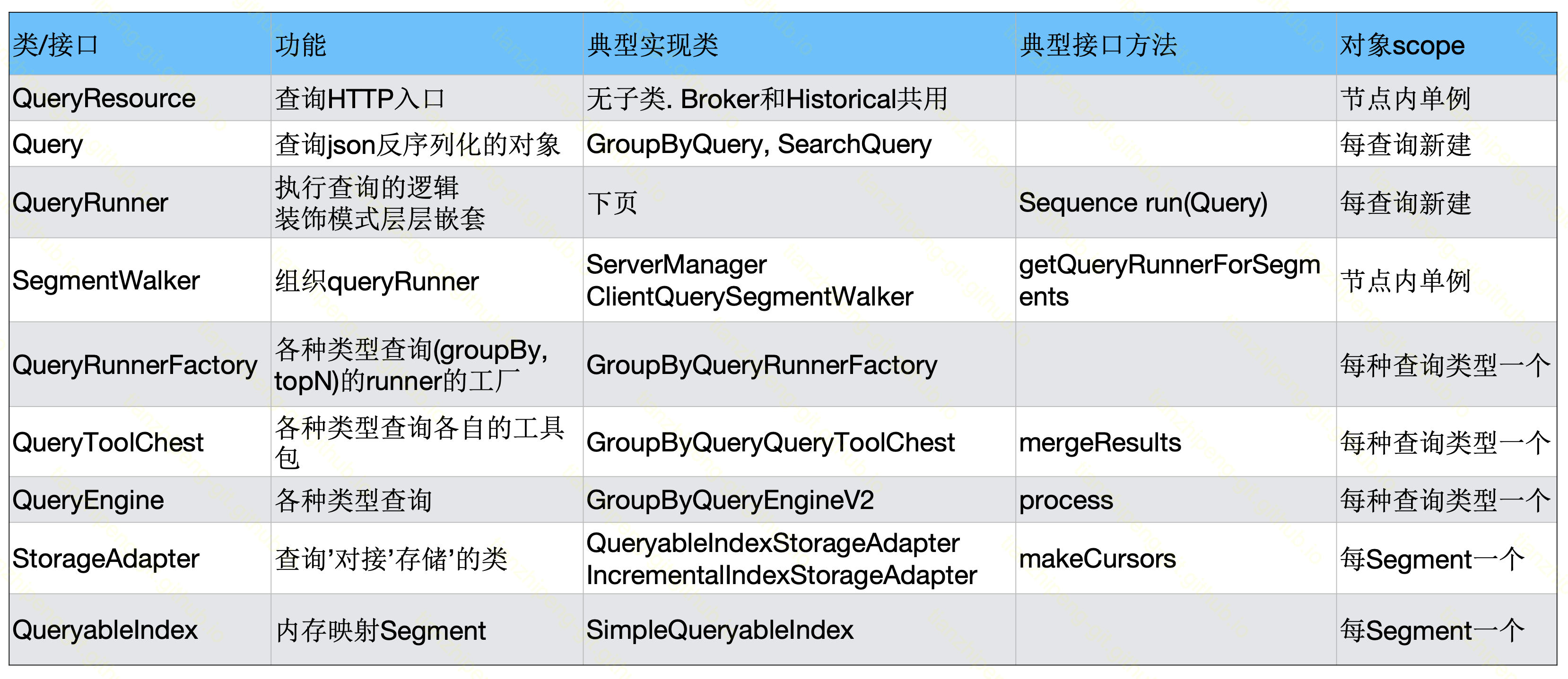 QueryResource和Query对象的功能也很好理解, 在刚才的5个Druid源码细节一part都有提到.