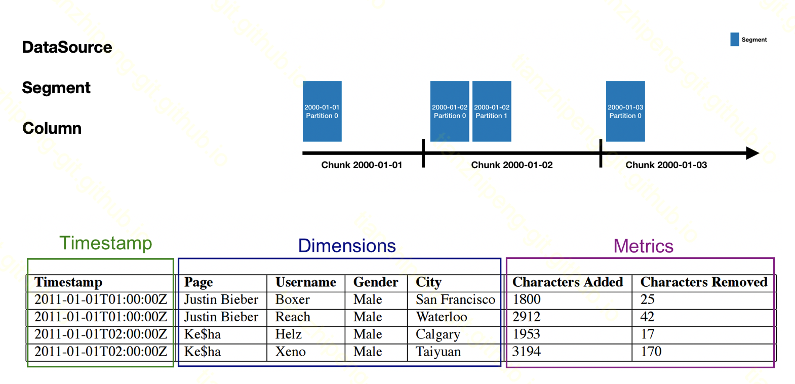 - DataSource根据时间划分为segment,