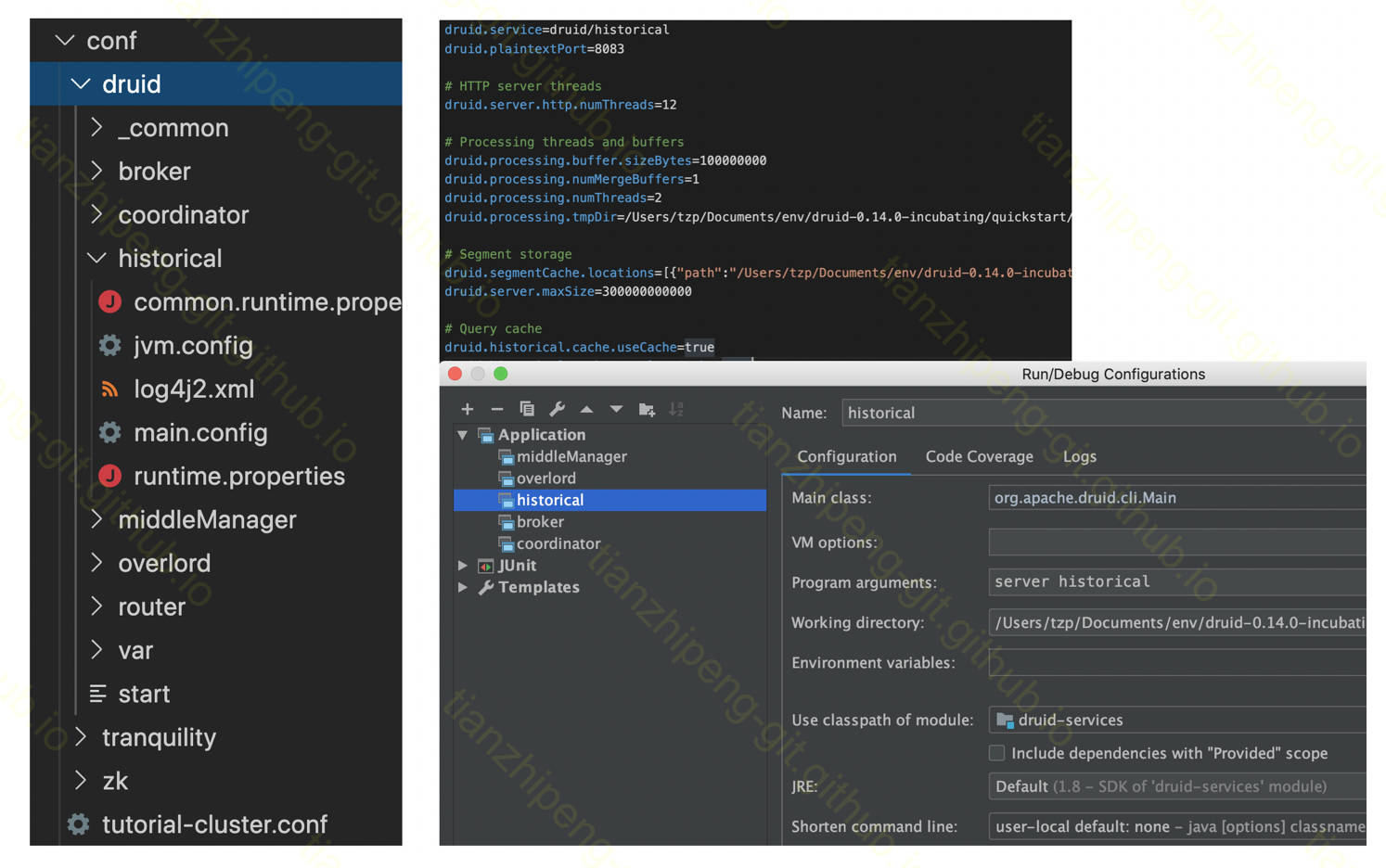 - Druid分节点的好处, 可以用打好的包跑其他节点, 只用Idea跑我关心的historical节点