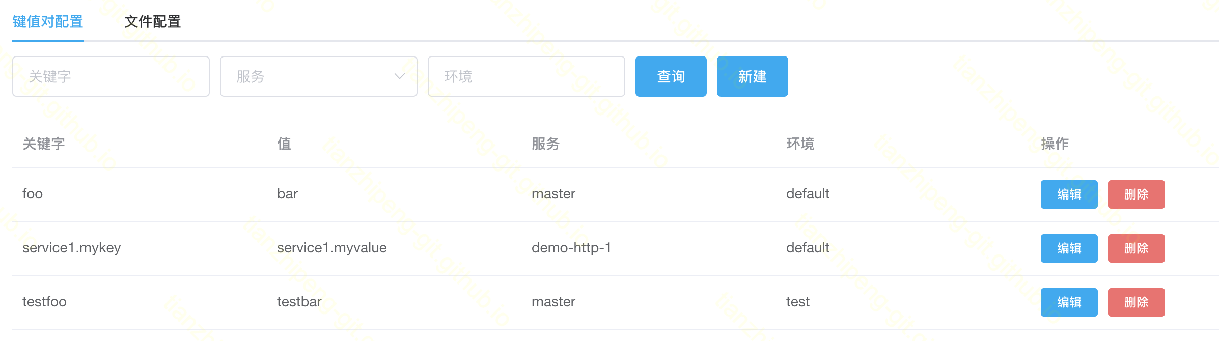 配置由project, service, profile, key(fileName)这四项来唯一确定一个配置.